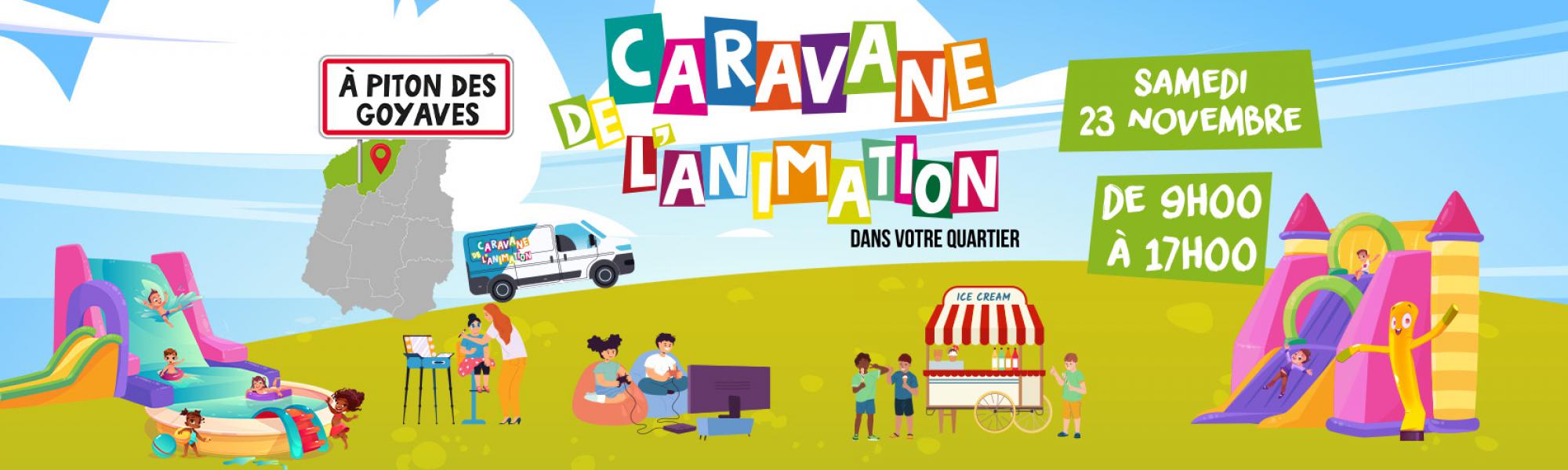 Le quartier de Piton des Goyaves accueille la caravane de l'animation, le samedi 23 novembre de 9h à 17h. Structures gonflables et aquatiques, ateliers maquillage, challenges et défis vous attendent sur l'ensemble de la journée !